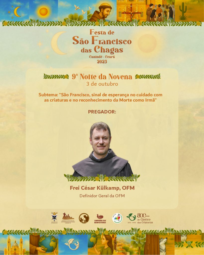 Cada noite da Novena de São Francisco das Chagas 2025 será um momento único de fé, partilha e anúncio da Palavra. Diversos pregadores estarão conosco, trazendo reflexões que nos ajudarão a viver com mais profundidade este tempo de graça.