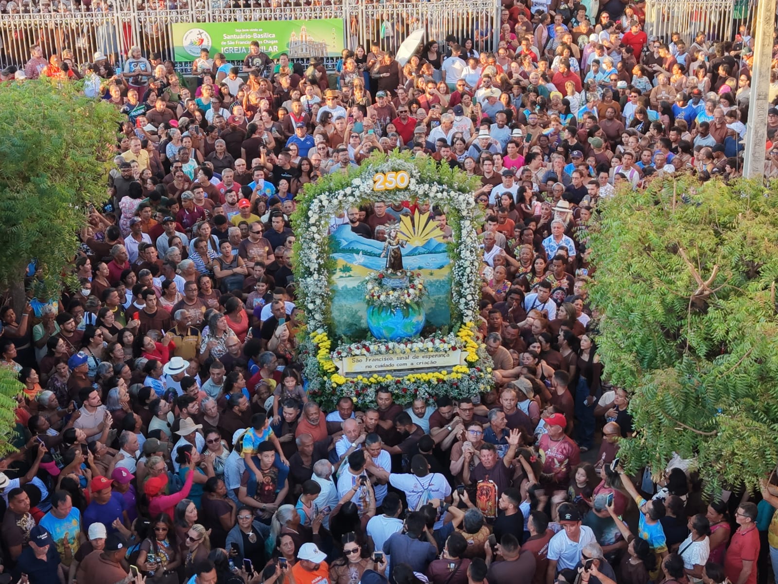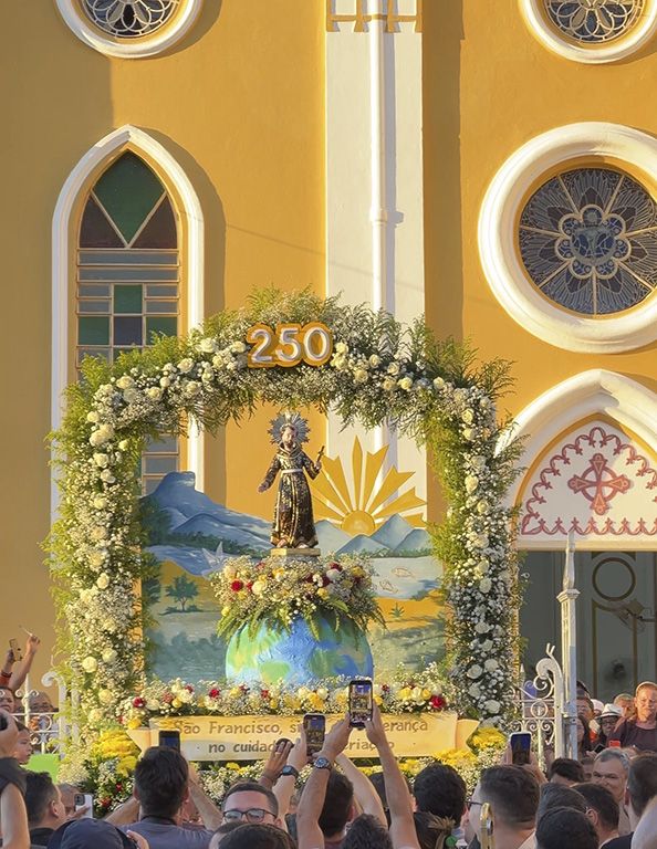 O ponto alto da celebração foi, como de costume, a tradicional procissão com a imagem de São Francisco das Chagas – que neste ano completa 250 anos de presença no Santuário. O cortejo percorreu as ruas de Canindé em um clima de fé, emoção e profunda devoção popular. Durante o percurso, o refrão “Que santo milagroso, que santo milagroso, São Francisco é de fato um santo milagroso” ecoava nas vozes do povo, expressando o amor e a confiança dos devotos.